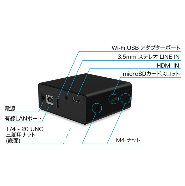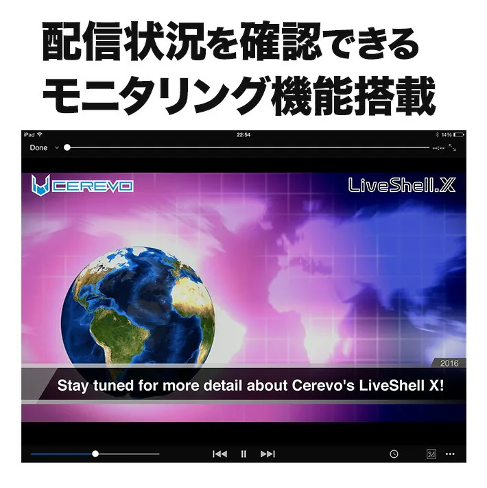 フルHD対応、複数サービスへの同時ライブ配信、録画機能などを備えたライブ配信機器「LiveShellシリーズ」の最上位モデル 防犯カメラの映像を朝から晩まで連続して遠隔地で配信する際に安心してお使いいただけます。 ●最大解像度1080/60p。コーデックは最新のH.265も対応 ●最大3ストリームまでの同時ライブ配信 【動作確認済みのライブ配信サービス】 ●本体SDカードへの録画機能(H.264/H.265)を搭載 ●6時間駆動の大容量バッテリー ●携帯性の高い手のひらサイズの筐体 ●映像や音声の配信状況を確認できるモニタリング機能 ●専用サービス「Dashboard」で多彩な機能を簡単にコントロール ●スイッチャー不要、本体のみでロゴやテロップを挿入・切り替え LiveShell Xの新機能として透過PNG画像にも対応。背景を透過したPNG画像を使うことで、任意の形状のーターマークもロゴやテロップに利用できます。 ●ネット回線不要のローカル配信など多彩な配信モードに対応 |