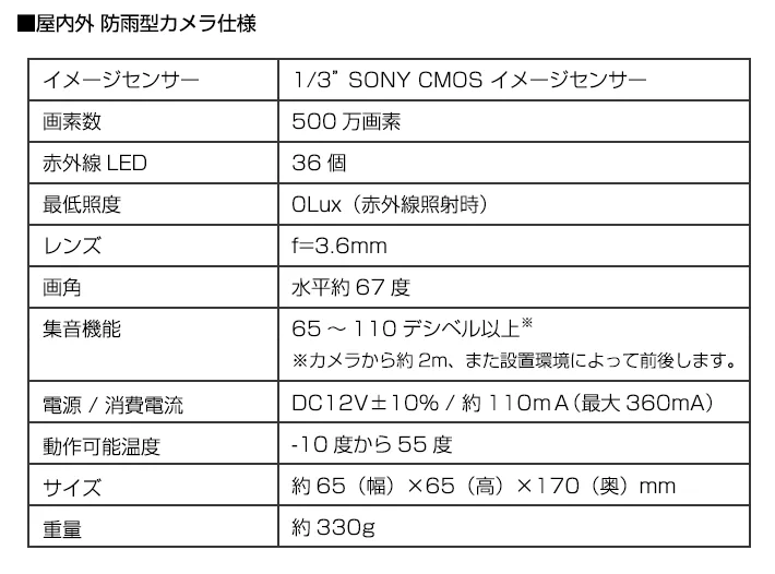 - 屋外(防滴・防水)防犯カメラ